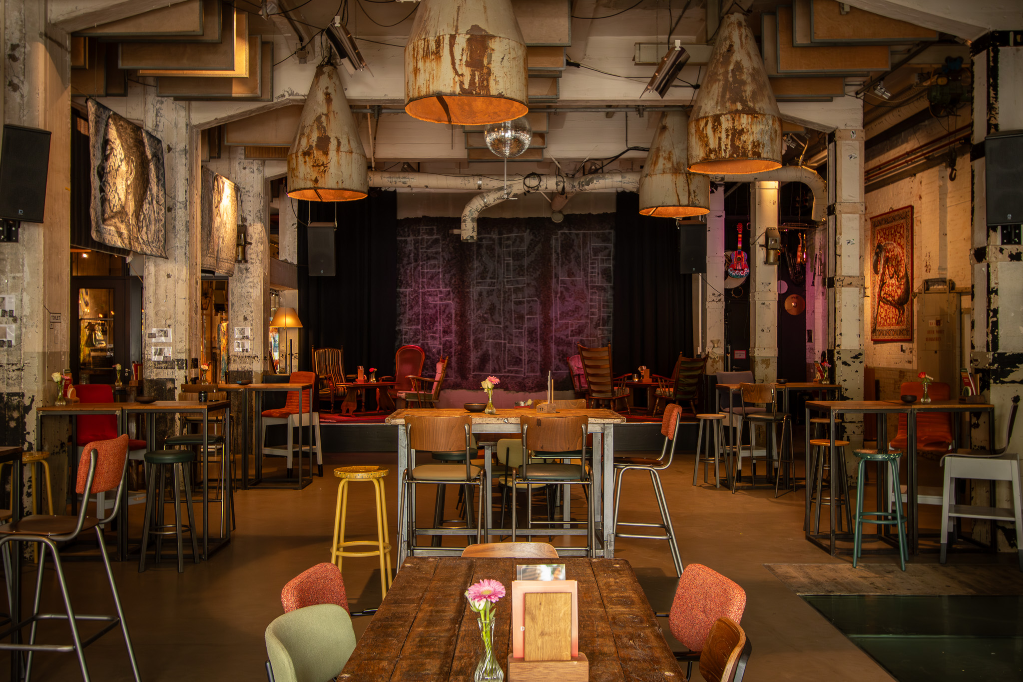 Met een karakteristieke boogconstructie en een groot podium perfect voor een bedrijfspresentatie, congres, workshop, voorstelling of een concert.